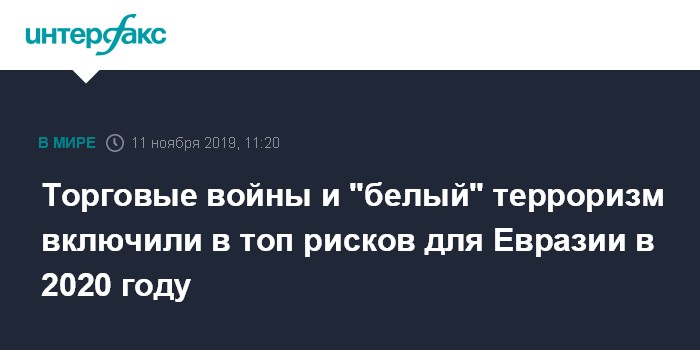Торговые войны и "белый" терроризм включили в топ рисков для Евразии в 2020 году