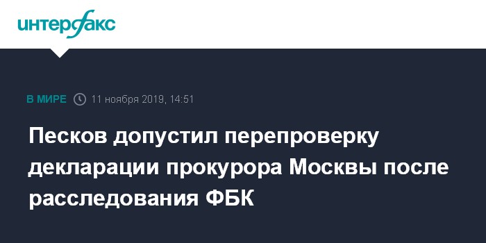 Песков допустил перепроверку декларации прокурора Москвы после расследования ФБК
