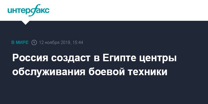 Москва. 12 ноября. INTERFAX.RU - Министр обороны и военной промышленности Египта Мухаммад Заки поблагодарил российского коллегу Сергея Шойгу за готовность содействовать в строительстве на территории республики центров обслуживания боевой техники египетской армии.