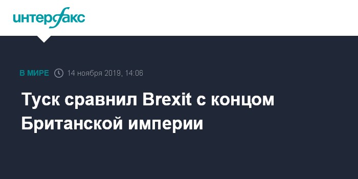 Москва. 14 ноября. INTERFAX.RU - Председатель Евросовета Дональд Туск, которому вскоре предстоит покинуть свой пост, согласился с позицией о том, что Brexit обозначит реальный закат Британской империи, сообщает газета The Guardian.