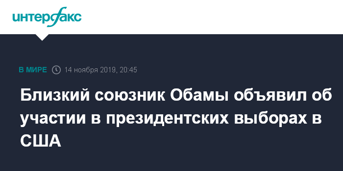 Близкий союзник Обамы объявил об участии в президентских выборах в США