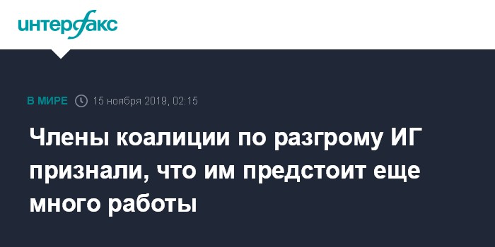 Москва. 15 ноября. INTERFAX.RU - Министры глобальной коалиции по разгрому ИГ (террористическая организация, запрещена в РФ) на состоявшейся в Вашингтоне встрече констатировали, что проделана большая работа, но и многое ещё остается сделать.