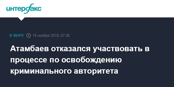 Москва. 15 ноября. INTERFAX.RU - Экс-президент Киргизии Алмазбек Атамбаев отказывается участвовать в рассмотрении уголовного дела о незаконном освобождении криминального авторитета Азиза Батукаева, сообщил в пятницу журналистам его адвокат Сергей Слесарев.