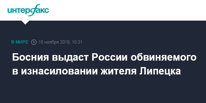 Босния выдаст России обвиняемого в изнасиловании жителя Липецка