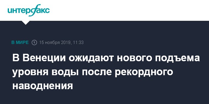 Москва. 15 ноября. INTERFAX.RU - Уровень воды в Венеции, страдающей от наводнения, в пятницу вновь поднимется до высоких значений, сообщает центр прогнозирования и оповещения о приливах.