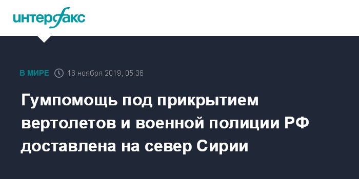 Гумпомощь под прикрытием вертолетов и военной полиции РФ доставлена на север Сирии