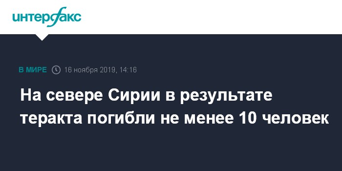 Москва. 16 ноября. INTERFAX.RU - По меньшей мере, десять человек стали жертвами взрыва заминированного автомобиля на севере Сирии, передает в субботу агентство "Анадолу".