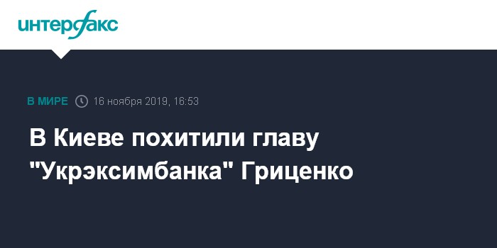 Москва. 16 ноября. INTERFAX.RU - В Киеве неизвестные похитили главу "Укрэксимбанк" Александра Гриценко, его семья обратилась в правоохранительные органы, сообщает в субботу телеканал "Прямой".