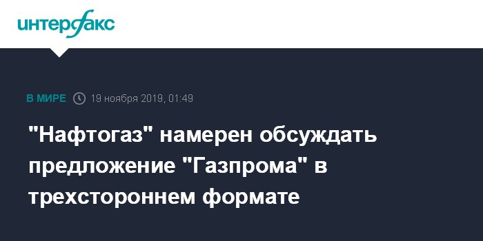 "Нафтогаз" намерен обсуждать предложение "Газпрома" в трехстороннем формате