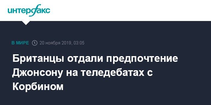 Отмечается, что, по мнению 63% зрителей, Джонсон лучше справился с темой Brexit. При этом 54% посчитали, что Корбин отлично справился с темой здравоохранения.
