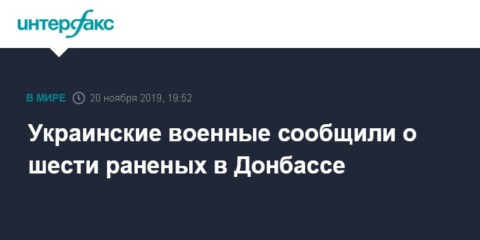 Москва. 20 ноября. INTERFAX.RU - Шесть украинских военнослужащих были ранены за сутки в среду из-за обстрелов со стороны противника на востоке Украины, сообщается на странице Операции Объединенных сил в фейсбуке.