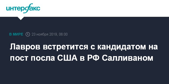 Ранее на этой неделе комитет по международным делам Сената США одобрил кандидатуру Салливана на пост посла в России. Для завершения процедуры назначения Салливана на новую должность по его кандидатуре должен будет проголосовать Сенат в полном составе.
