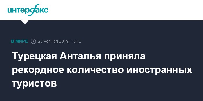 Москва. 25 ноября. INTERFAX.RU - Турецкая Анталья впервые в истории приняла свыше 15,6 млн туристов, сообщает портал Haberler.