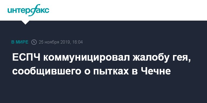 Москва. 25 ноября. INTERFAX.RU - Европейский суд по правам человека коммуницировал жалобу гомосексуалиста Максима Лапунова, который сообщил о применении к нему пыток в Чечне, сообщает "Российская ЛГБТ-сеть".