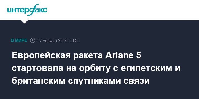 Европейская ракета Ariane 5 стартовала на орбиту с египетским и британским спутниками связи