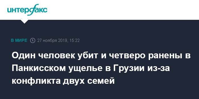 Москва. 27 ноября. INTERFAX.RU - Один человек убит, еще четыре человека получили ранения в перестрелке, произошедшей между местными жителями в среду в Панкисском ущелье в Грузии, сообщают грузинские СМИ.
