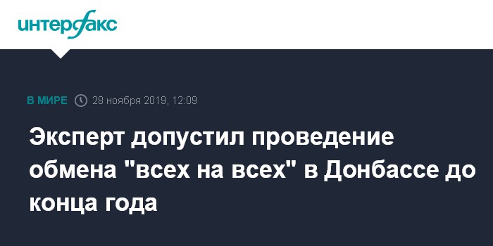 "Прогресс есть. Однако окончательные цифры пока требуют согласования. В качестве актуальной пока рассматривается формула "всех установленных на всех установленных" (ранее под этой формулой понимался обмен 200 удерживаемых на подконтрольной Киеву территории сторонников ДНР и ЛНР на 70 украинских военных - ИФ)", - сказал эксперт.