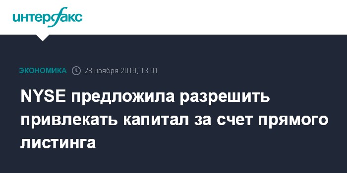 Москва. 28 ноября. INTERFAX.RU - Нью-йоркская фондовая биржа (NYSE) предложила Комиссии по ценным бумагам и биржам США (SEC) разрешить компаниям выходить на рынок путем прямого листинга акций для привлечения капитала, сообщила The Wall Street Journal.