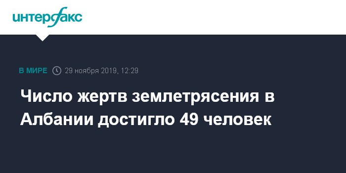 Москва. 29 ноября. INTERFAX.RU - Число жертв разрушительного землетрясения в Албании возросло до 49 человек, спасательные операции постепенно завершаются, пишет в пятницу Associated Press.