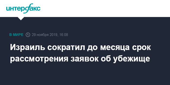 Москва. 29 ноября. INTERFAX.RU - Власти Израиля сократили срок рассмотрение заявлений о предоставлении убежища в стране с двух лет до одно месяца, сообщило Министерство туризма. Так чиновники планируют бороться с нелегальной миграцией.