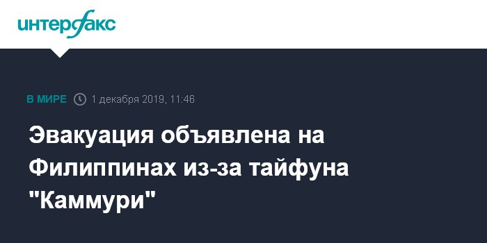 Москва. 1 декабря. INTERFAX.RU - Тысячи жителей будут эвакуированы из опасных районов Филиппин в связи с приближением тайфуна "Каммури".
