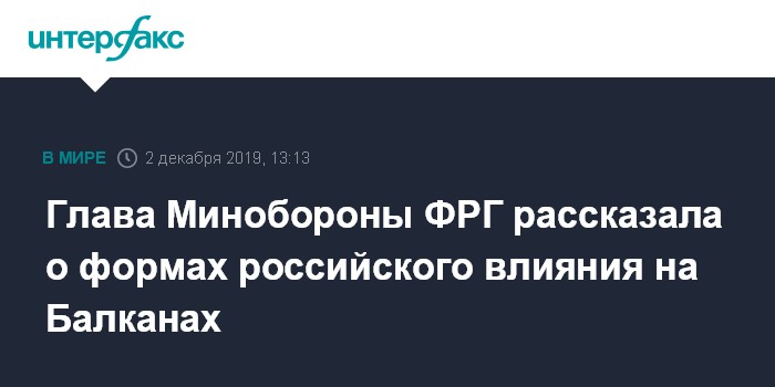 Москва. 2 декабря. INTERFAX.RU - Россия использует на Балканах такие же формы влияния, как в странах Балтии, приводит в понедельник радиостанция "Немецкая волна" слова министра обороны ФРГ Аннегрет Крамп-Карренбауэр.