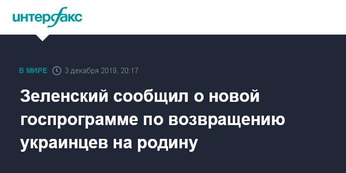 Москва. 3 декабря. INTERFAX.RU - Президент Украины Владимир Зеленский анонсировал запуск новой государственной программы "Возвращайся и оставайся".