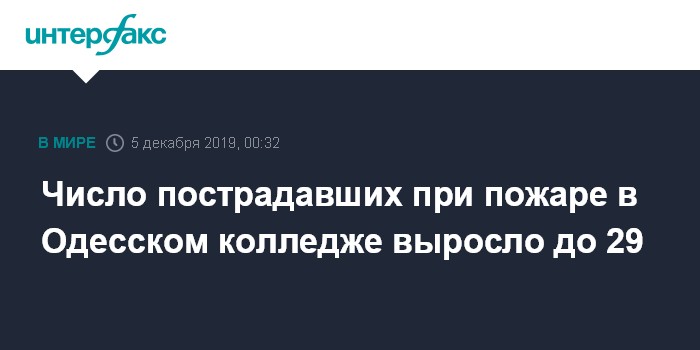 "В результате пожара в Одесском колледже 1 человек погиб, пострадали 29 человек. Место нахождения 13 человек уточняется. Максимальные силы сейчас направлены на ликвидацию пожара и поиск лиц, место нахождения которых не установлено", - говорится в фейсбуке Нацполиции Украины.