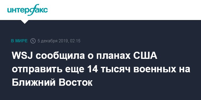 WSJ сообщила о планах США отправить еще 14 тысяч военных на Ближний Восток