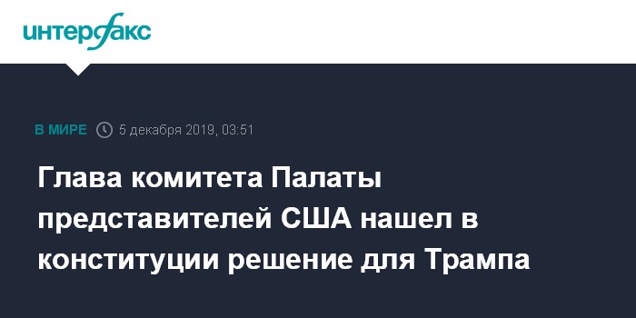 Глава комитета Палаты представителей США нашел в конституции решение для Трампа