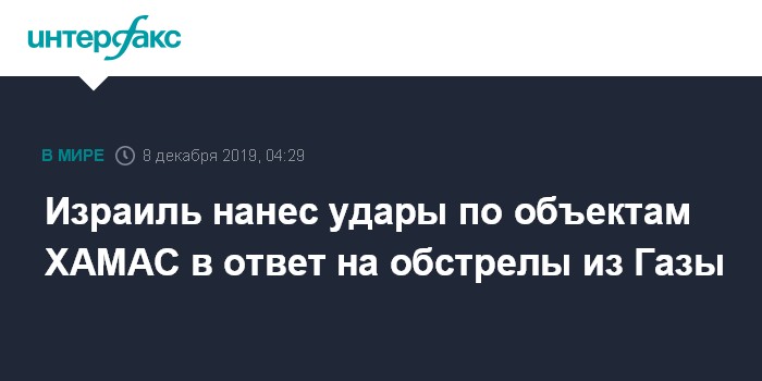 Москва. 8 декабря. INTERFAX.RU - Три ракеты были выпущены из сектора Газа по израильским городам, в ответ Израиль нанес удары по объектам ХАМАС, сообщается в твиттере Армии обороны Израиля (IDF).