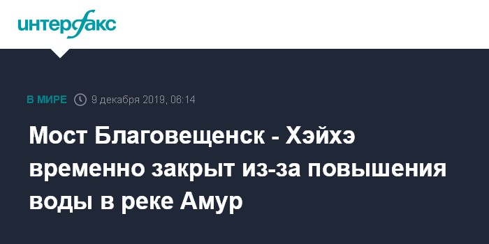 Москва. 9 декабря. INTERFAX.RU - Повышение уровня воды в реке Амур привело к разрушению подъездных путей к международному пассажирскому понтонному мосту сообщением Благовещенск (РФ)-Хэйхэ (КНР), сообщает в понедельник министерство внешнеэкономических связей Амурской области.