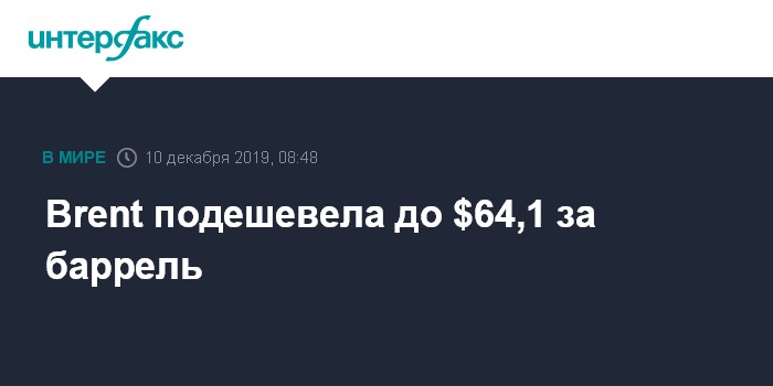 К 8:18 по московскому времени февральские фьючерсы на Brent дешевели на лондонской бирже ICE Futures на $0,15 (на 0,23%), до $64,1 за баррель. За понедельник Brent подешевела на $0,14 (на 0,22%), до $64,25 за баррель.