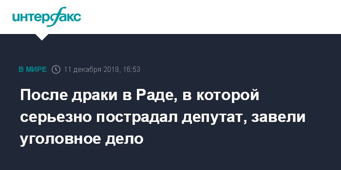 Москва. 11 декабря. INTERFAX.RU - Полиция открыла уголовное производство по факту драки в Верховной раде Украины, в которой участвовали депутат фракции "Слуга народа" Андрей Богданец, позже госпитализированный с подозрением на сотрясение мозга, и члены праворадикального объединения "Свобода".