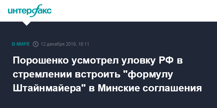 "Ни о какой "формуле Штайнмайера" ни в каких Минских соглашениях ничего нет. Почему разведение войск? Почему "формула Штайнмайера", которой нет в Минских соглашениях? Путин продавливает? Позиции, которые нужны Украине, даже не поднимаются, включая дорожную карту, миротворцев, позициями по укреплению обороноспособности и прозрачности процесса", - подчеркнул Порошенко.