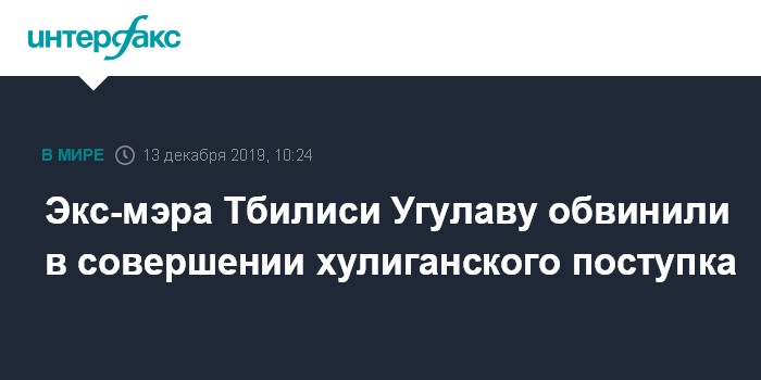 Москва. 13 декабря. INTERFAX.RU - Тбилисский городской суд вечером в четверг обвинил бывшего мэра Тбилиси, одного из лидеров оппозиционной партии "Новая Грузия" Гиги Угулаву в насилии в отношении другого гражданина в зоне вылета в тбилисском аэропорту.