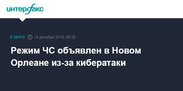 Москва. 14 декабря. INTERFAX.RU - Компьютеры городского правления Нового Орлеана подверглись кибератаке, власти города ввели режим ЧС.