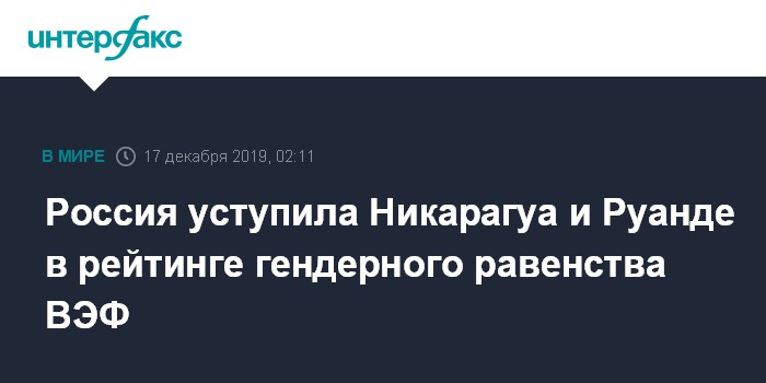 Россия уступила Никарагуа и Руанде в рейтинге гендерного равенства ВЭФ