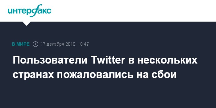 Москва. 17 декабря. INTERFAX.RU - Пользователи социальной сети Twitter сообщают во вторник о сбоях в ее работе, следует из данных интернет-сервиса Downdetector, который отслеживает работу интернет-ресурсов.