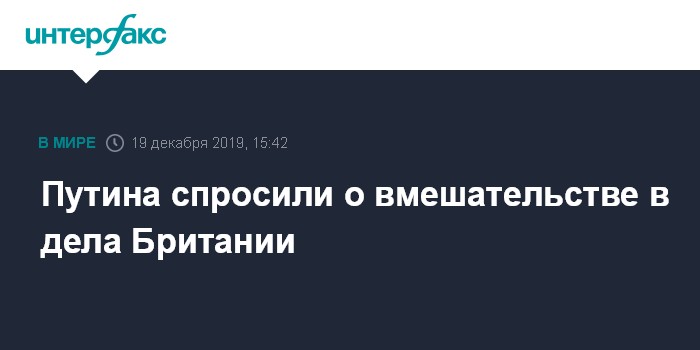 Москва. 19 декабря. INTERFAX.RU - Корреспондент BBC News спросил Владимира Путина, вмешивалась ли Россия во внутреннюю политику Великобритании, в том числе в связи с Brexit, а также спросил о его отношении к премьер-министру Борису Джонсону, который ранее называл его "тираном" и сравнивал с эльфом Добби из сказок о Гарри Поттере.