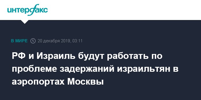 Москва. 20 декабря. INTERFAX.RU - Дипломаты России и Израиля обсудили в четверг участившиеся случаи задержания израильтян в московских аэропортах и договорились работать над решением этой проблемы, сообщает Times of Israel со ссылкой на заявление израильского МИДа.