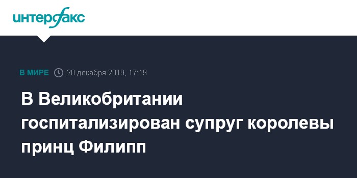 Москва. 20 декабря. INTERFAX.RU - Супруг королевы Великобритании принц Филипп госпитализирован, это меры предосторожности, уточняют в Букингемском дворце.