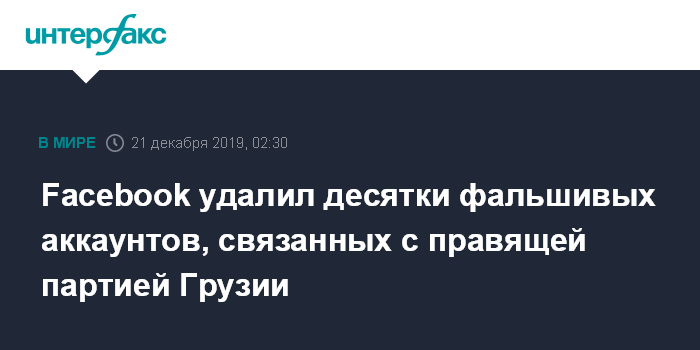 Москва. 21 декабря. INTERFAX.RU - Американская компания Facebook в пятницу сообщила о выявлении десятков фальшивых аккаунтов и сотен страниц, якобы связанных с правящей партией Грузии "Грузинская мечта".