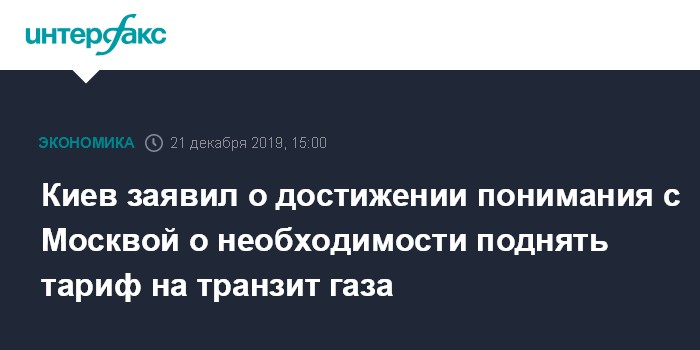 Киев заявил о достижении понимания с Москвой о необходимости поднять тариф на транзит газа