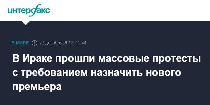Москва. 22 декабря. INTERFAX.RU - Тысячи протестующих на юге Ирака блокировали дороги и здания официальных учреждений в знак протеста против нынешнего премьера и задержки с назначением нового главы правительства.