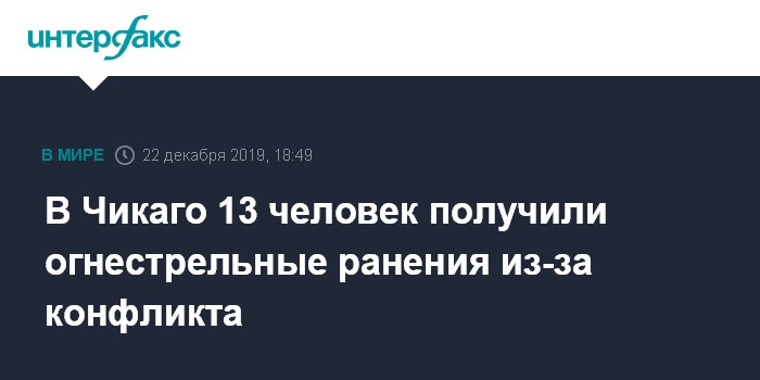 Москва. 22 декабря. INTERFAX.RU - В Чикаго 13 человек получили ранения в воскресенье в результате стрельбы из-за конфликта на домашнем вечере памяти, сообщает агентство Associated Press.