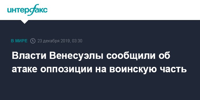 Москва. 23 декабря. INTERFAX.RU - Группа венесуэльских оппозиционеров напала на воинскую часть на границе с Бразилией, погиб как минимум один военнослужащий, сообщил в твиттере министр обороны Венесуэлы Владимир Падрино Лопес.