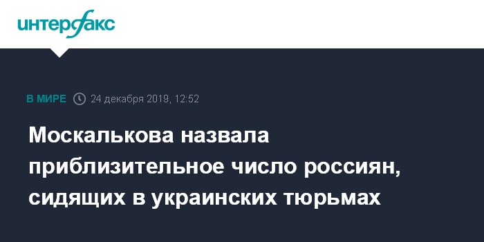Москва. 24 декабря. INTERFAX.RU - В местах лишения свободы на Украине находятся около 400 российских граждан, сообщила уполномоченный по правам человека в России Татьяна Москалькова.