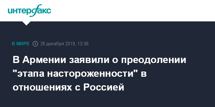 Москва. 26 декабря. INTERFAX.RU - В отношениях между Арменией и Россией полностью пройден "этап настороженности", который возник после "бархатной революции", заявил руководитель постоянной комиссии по внешним связям армянского парламента Рубен Рубинян.