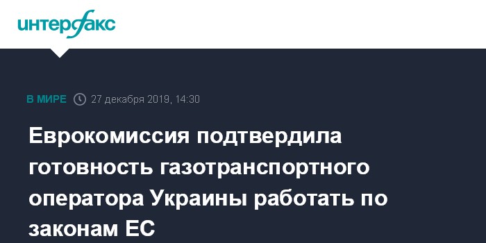 Еврокомиссия подтвердила готовность газотранспортного оператора Украины работать по законам ЕС
